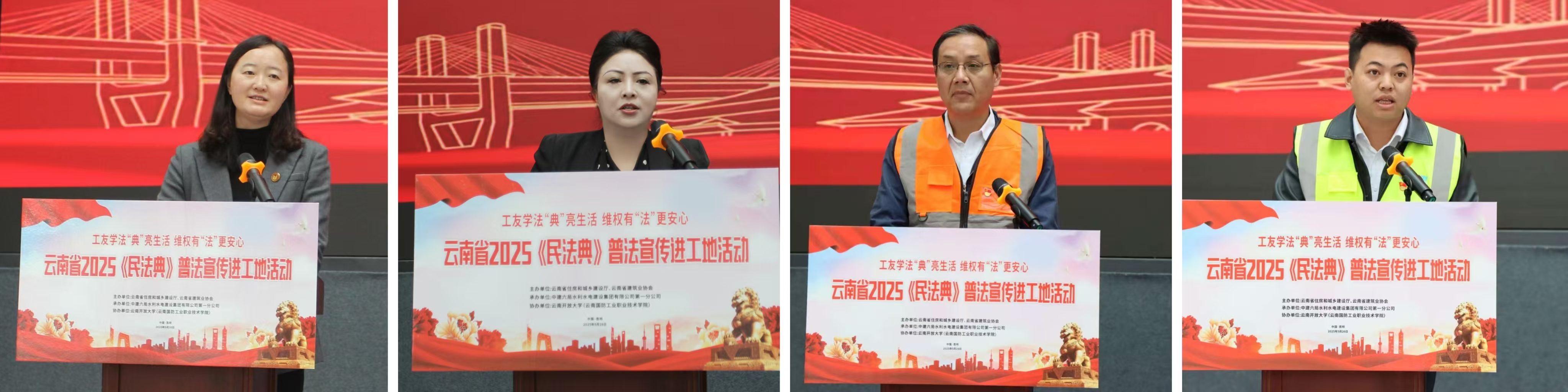 为贯彻习近平法治思想,落实“八五”普法规划,5月26日,云南省建筑业协会党支部充分发挥党建引领作用,进一步践行“民法典宣传月”普法工作要求,携手云南省住房和城乡建设厅政策法规处,在中建六局云南国防学院项目部开展“工友学法‘典’亮生活,维权有法更安心”普法进工地主题党日活动。省住房城乡建设厅、省建筑业协会、中建六局水利水电建设集团有限公司第一分公司、云南开放大学(云南国防工业职业技术学院)、上海市海华永泰昆明律师事务所等相关领导出席,近300名党员职工、法律专家、学生代表及建筑工人齐聚一堂,以党建为桥梁,构建起“协会统筹、校企联动、工友受益”的法治共建崭新格局。