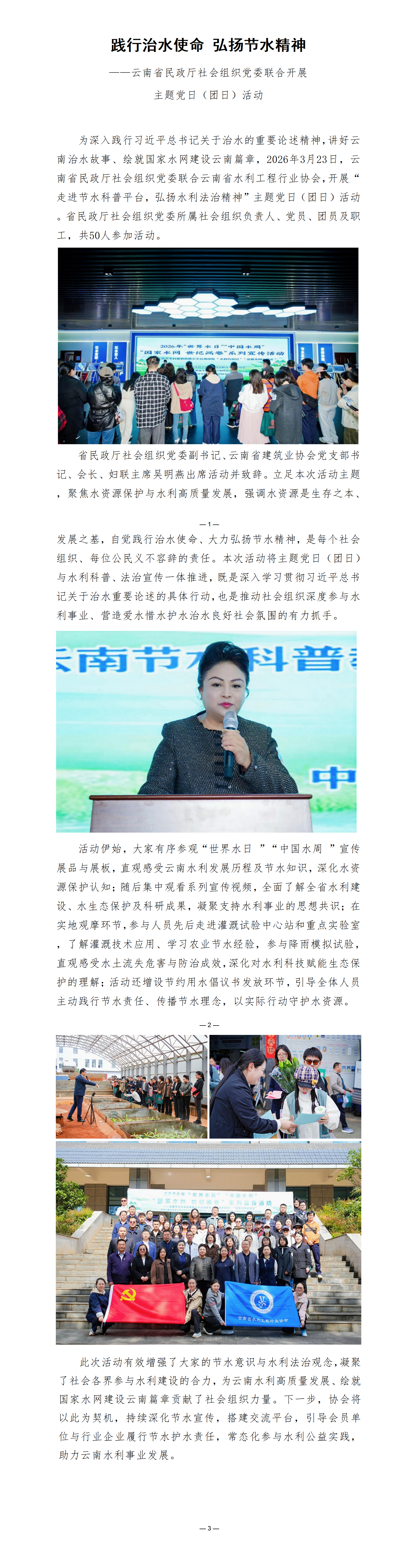 践行治水使命 弘扬节水精神 ——云南省民政厅社会组织党委联合开展主题党日(团日)活动