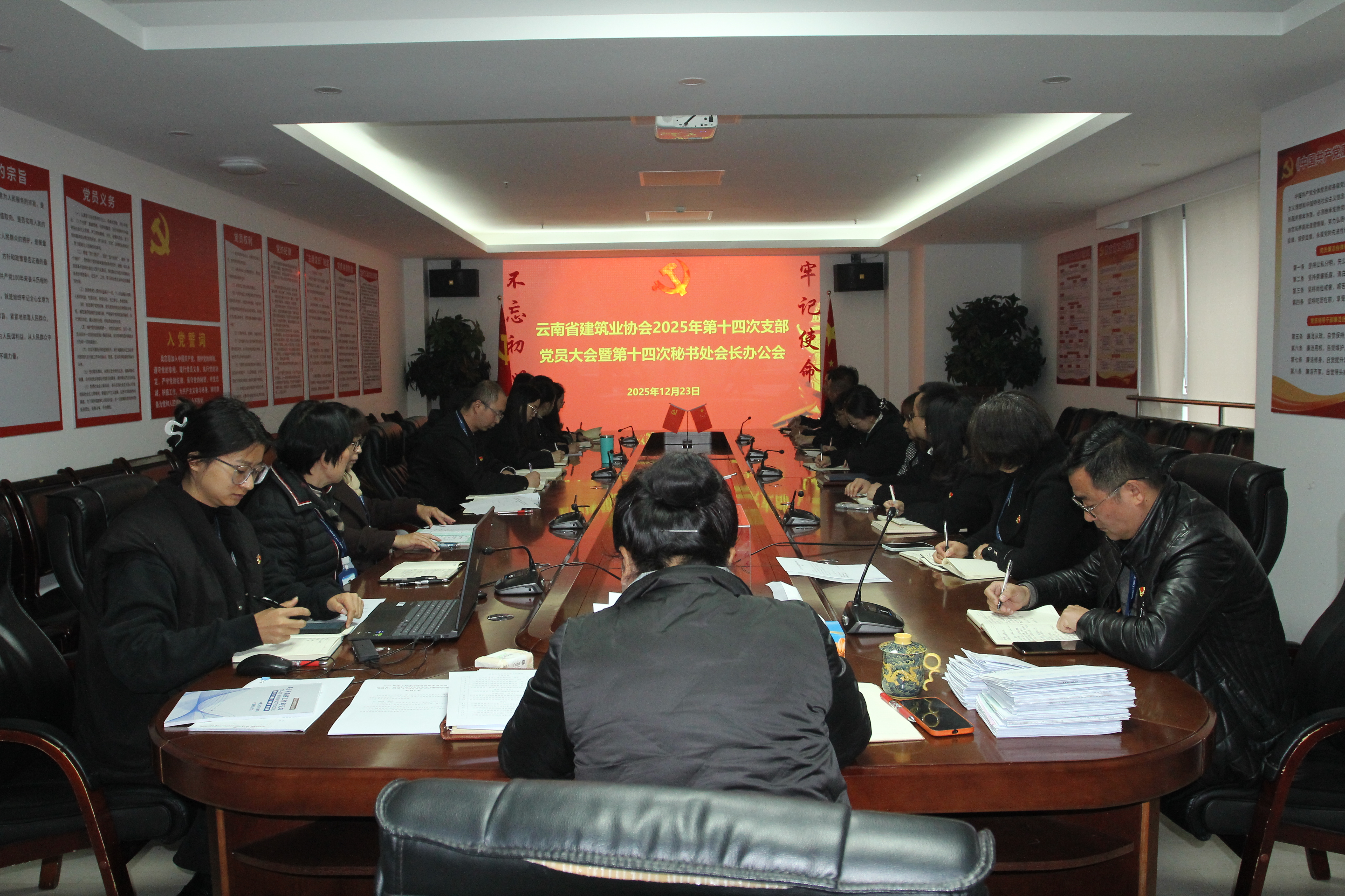 为深入学习习近平新时代中国特色社会主义思想,贯彻落实党的二十届四中全会和中央经济工作会议精神,扎实做好岁末年初工作谋划,2025年12月23日,云南省建筑业协会召开了第十四次支部党员大会暨第十四次秘书处会长办公会,协会全体党员、职工及学校职工共28人参会,会议由党支部书记、会长吴明燕主持。