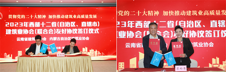 会上,云南省建筑业协会与内蒙古自治区建筑业协会等21家协会(联合会)分别签订了友好协议。签约双方一致表示,将加强交流联系,建立互访制度,开展异地服务,实现资源共享、优势互补,共同努力促进两地建筑行业持续健康发展。