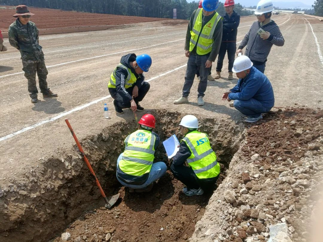 本次转序路段分别是:1、K10+469.29~K10+676.96路基土石方工程;2、K12+079.04~K13+126.96路基土石方工程;3、K15+270~K16+119.96路基土石方工程;4、EK0+000~EK0+779.56路基土石方工程。全长2.89公里。此次验收工作曲靖市交通运输局综合行政执法支队参与验收检查。苏交科交工检测验收。检测人员依据相关规范和标准,利用落锤式弯沉仪等专业仪器设备,对路基纵断高程、中线偏位、宽度、平整度、横坡、边坡进行了全面、细致的检测。经严格检验,该路段各项技术指标均符合设计及规范要求,路基转序验收合格。